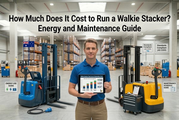 In Australia, the total annual running cost of a walkie stacker typically ranges from $1,500 to $4,500 AUD for a single-shift commercial operation. This includes electricity ($250–$700), scheduled servicing ($500–$1,500), amortised battery replacement, wear parts, and mandatory WHS compliance inspections. Over a 10-year lifespan, operating a walkie stacker will generally cost between $14,000 and $40,000, meaning the long-term maintenance and energy expenses will often equal or exceed the initial purchase price of the machine.